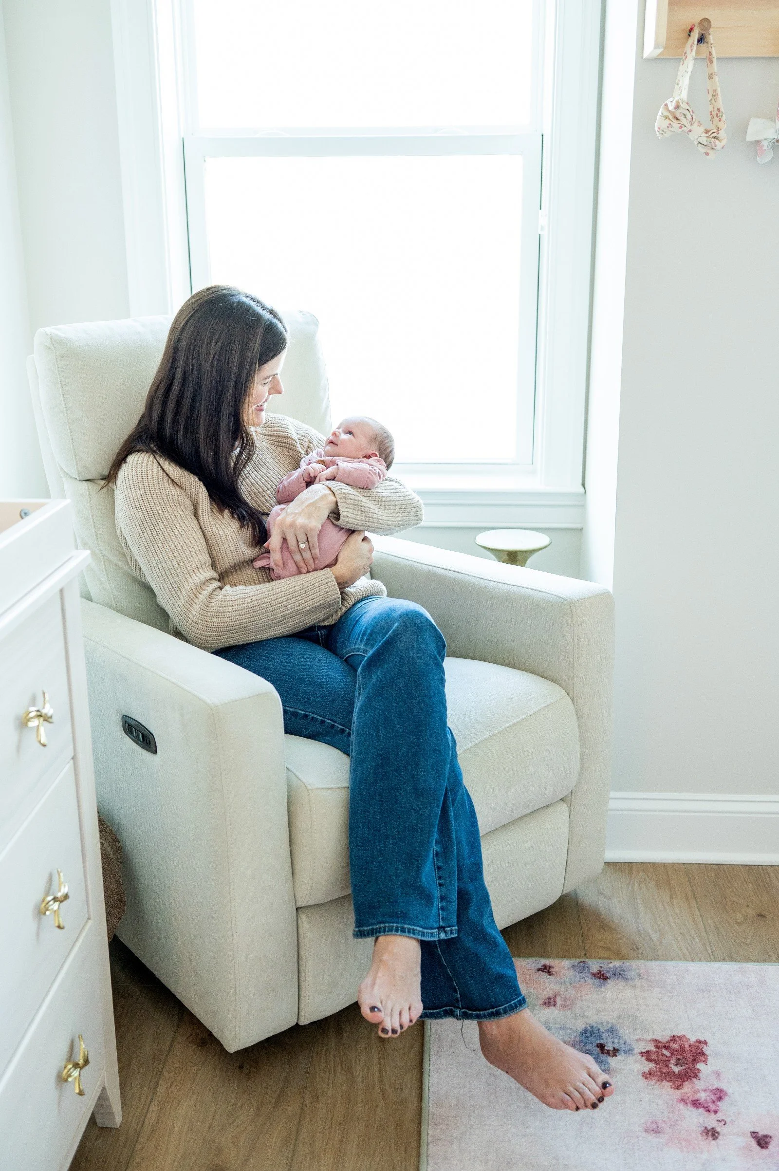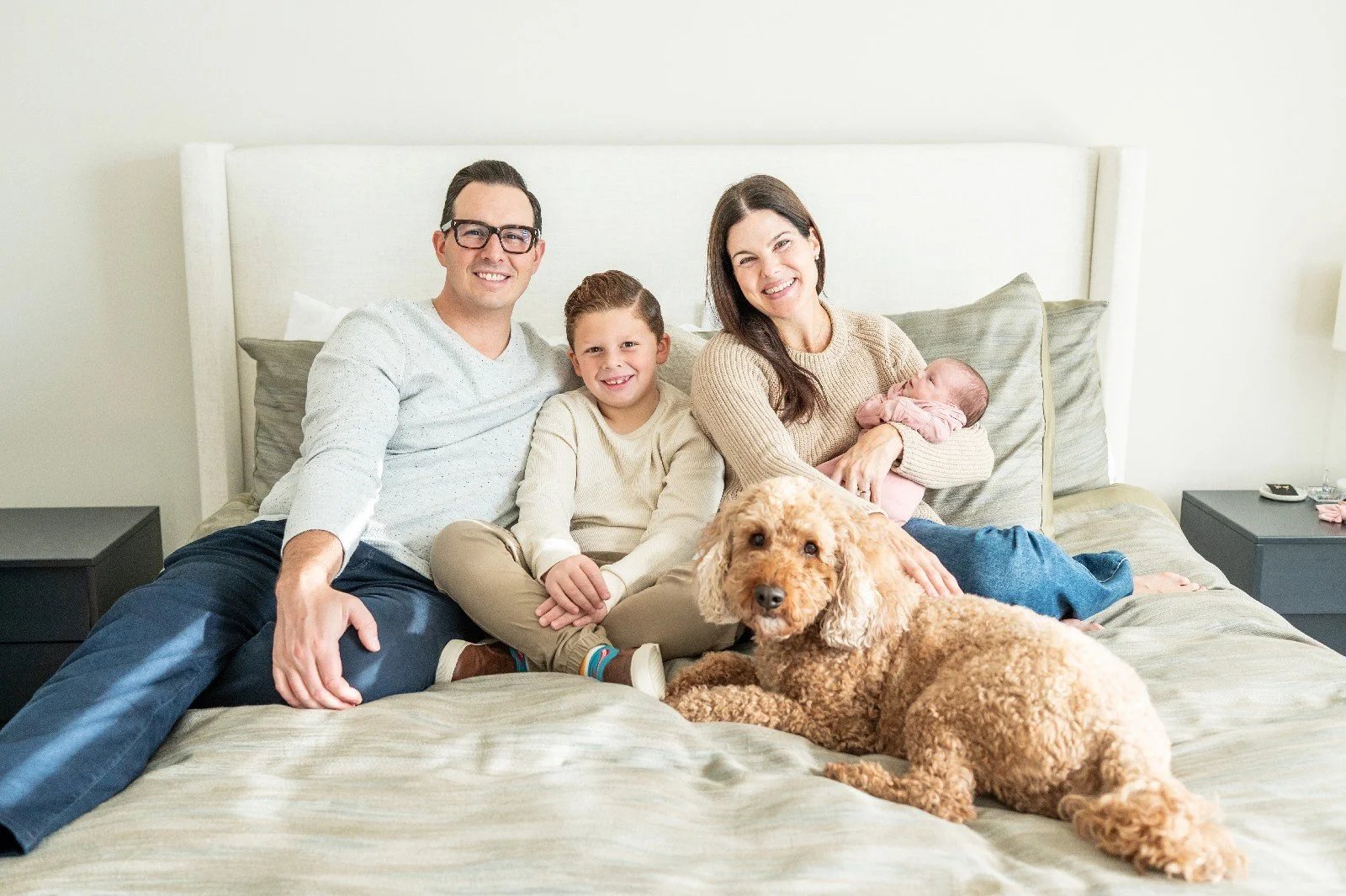 This sweet, beautiful family welcomed me into their gorgeous new home to document this incredibly special time welcoming their daughter into the family. They are a blended family which is so special to witness. I love that big brother was able to be included in these portraits and they now have a lovely framed photo of the full family, pup included, in their living room that they all can see every single day. I have read about the importance of photos in the home for a child’s self esteem and self worth within a family. It’s so beneficial to have photos of all members together displayed where the kids can see them everyday.
